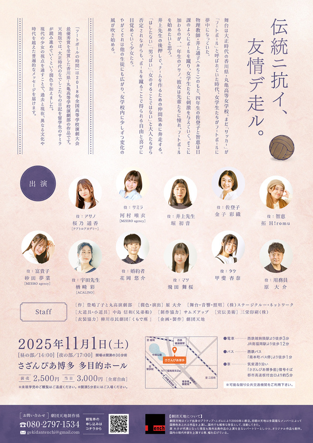 女子サッカーを題材にした物語であり17時の終演後には福岡J・」アンクラスの選手とアフタートークを行います。