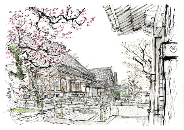 葦ペンが生み出す独特の美しい線が魅力のスケッチ画展です。いろんな場所に行ってスケッチを楽しみ交流を楽しみ、和気あいあいの中で作品ができています。